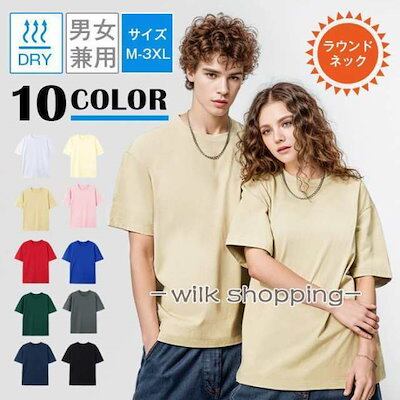 Tシャツ 無地 半袖 カットソー 速乾 ドライ サラサラ 半袖 メンズ レディース 男女兼用「一枚買うともう一枚プレゼント」