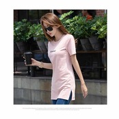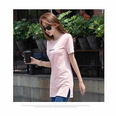 チュニック Tシャツ レディース 半袖 スリット入り トップス Uネック ロング ゆったり カットソー 半袖Tシャツ 無地 夏 レイヤードトップス