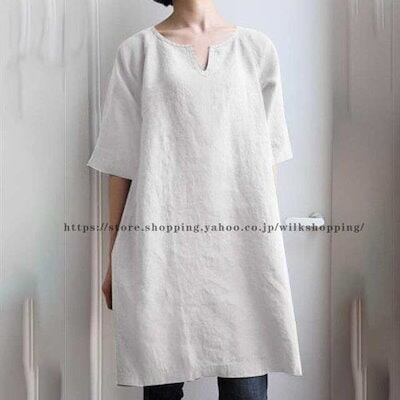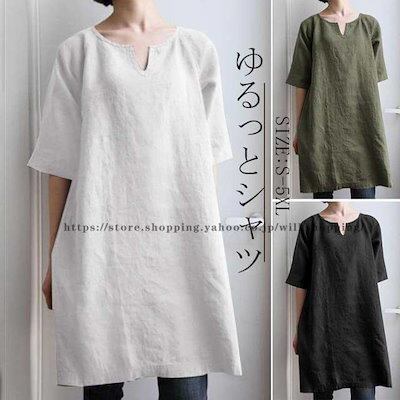 チュニック レディース トップス シャツ ブラウス tシャツ ロング 半袖 夏 無地 大きいサイズ ワンピース 40代 ゆったり 体型カバー シンプル 部屋着 50代