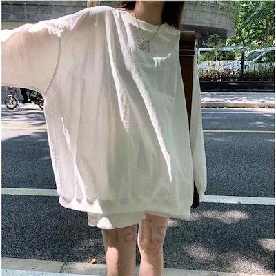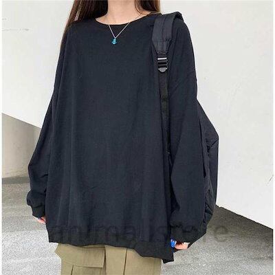 Tシャツ ゆるTシャツ ゆるトップス ドロップショルダー シンプル 無地 長袖 ゆったり レディース トップス 秋冬