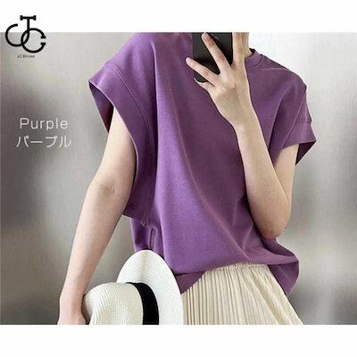 フレンチスリーブtシャツ 無地T クルーネック tシャツ フレンチスリーブ レディーストップス 夏 カジュアル 二の腕カバー ノースリーブ シンプル 大きいサイズ