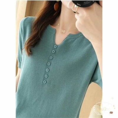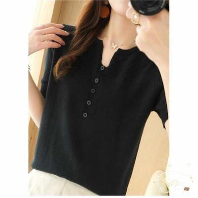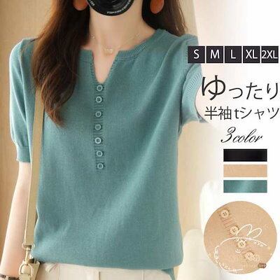 カットソー レディース tシャツ 半袖 Tシャツ 春夏 トップス vネック サマーニット 薄手 ゆったり プルオーバー ストレッチ 無地 通勤 OL