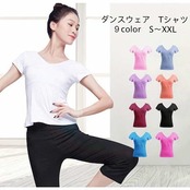 ダンスウェア レディース トップス Tシャツ 半袖レッスンウェア ヨガウェア練習着 フィットネス シンプル ダンス衣装トレーニング無地ステージ全店二点送料無料