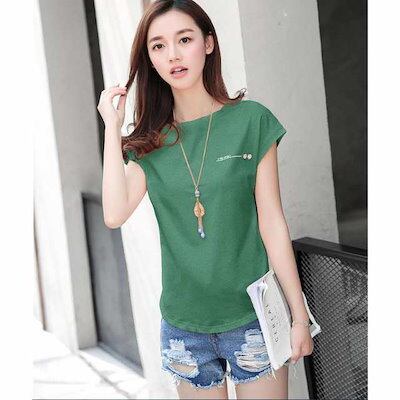 Tシャツ フレンチスリーブ レディース 春 夏 半袖 綿 カットソー クルーネック 無地 トップス tシャツ