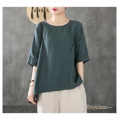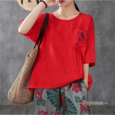 ブラウス Tシャツ レディース 夏 綿麻 リネン 半袖 花柄 トップス 無地 薄手 体型カバー uvカット ゆったり 柔らかい カジュアル 母の日