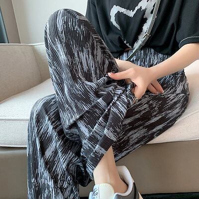 ワイドパンツイージー トレンド 韓国ファッション リブ ワイドレッグパンツ レディース 無地 シンプル 大きいサイズ リラックス カジュアル おしゃれ