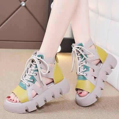 今っぽ!ストラップサンダルフラットサンダルサンダルサンダルレディースレトロ厚底靴韓国ファッションストラップサンダル厚底脚百掛けビーチサンダルカジュアル通気がいいシューズ母