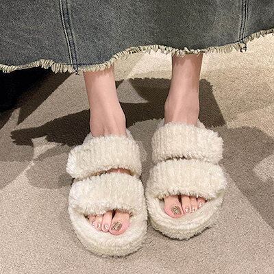 24 サンダル 歩きやすい ファーサンダル レディース 厚底スリッパ姿勢 矯正 美脚 韓国ファッション