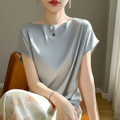 上品 夏 大人 アイスシルクブラウス レディース 韓国ファッション 気質百掛け 半袖 ブラウス シンプル 無地 通勤アンダーウェア 着痩せ トップスシフォンブラウス t