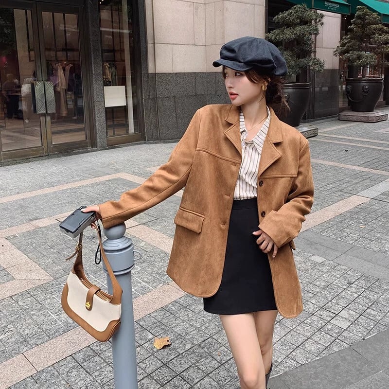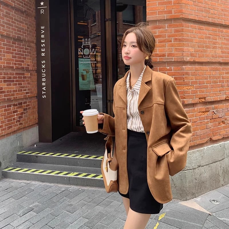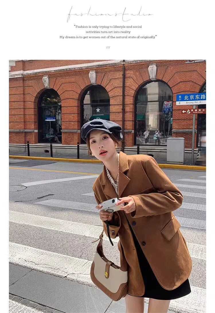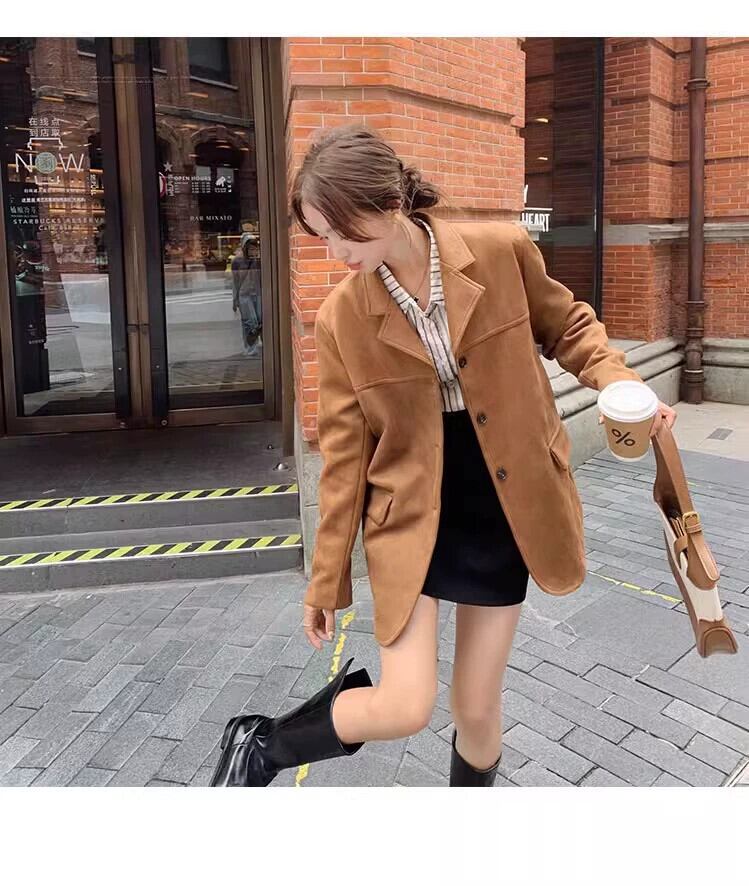 【送料無料】トップス アウター ブルゾン ジャケット メイラード レトロ ブラウン スエード スエード ジャケット レディース 春と秋 アメリカンエンドスタイル ミッドレングス スーツ レディース スウェード スプリング 春物 オータム 秋物 ブルゾン ジャケット レザー アウター コート チェスターコート ジャンパー kiki1029c5491216567