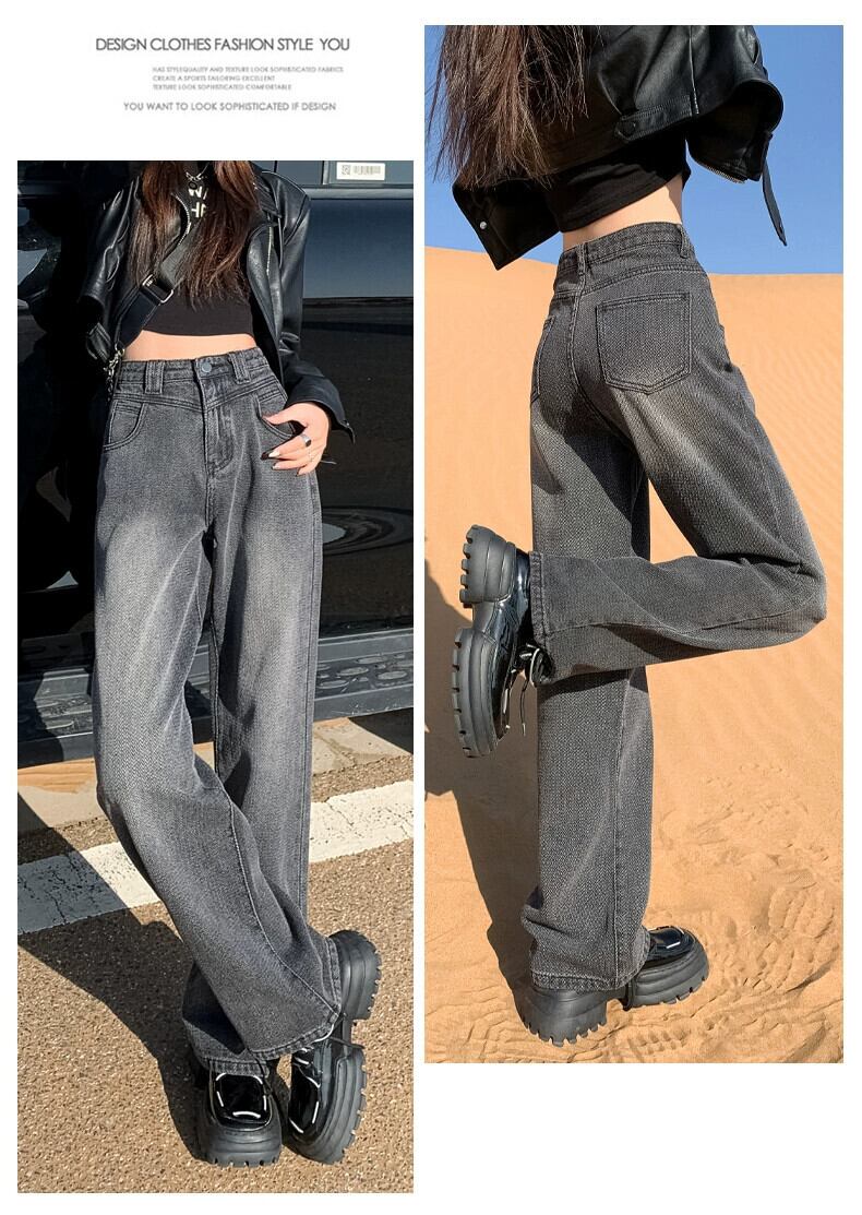 春ウエストワイドレッグジーンズレディース 2024 小さなライトカラーのアメリカンストリート雰囲気スタイルパンツ春と秋 レッド スプリング 春物 オータム 秋物 ワイドパンツ パンツ ズボン ボトムス ジャージ kikitaka0211b15505752475