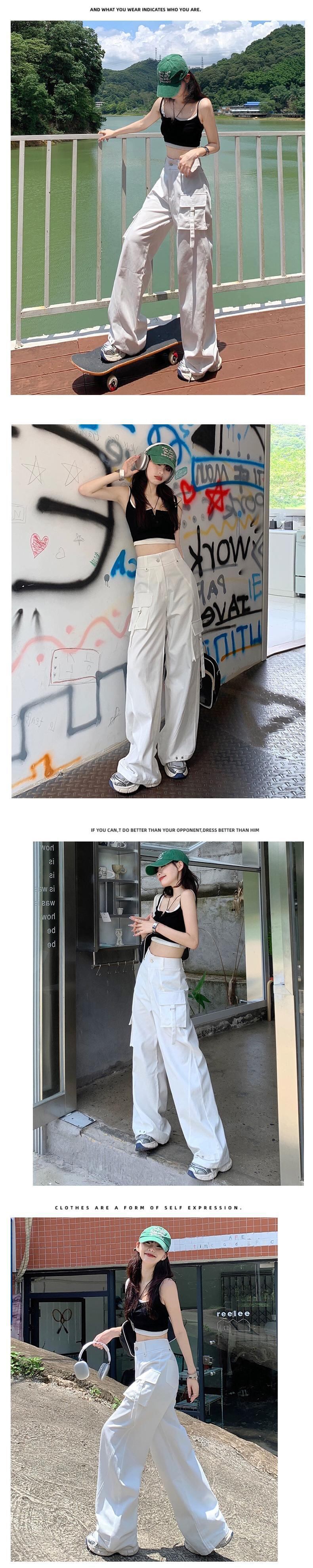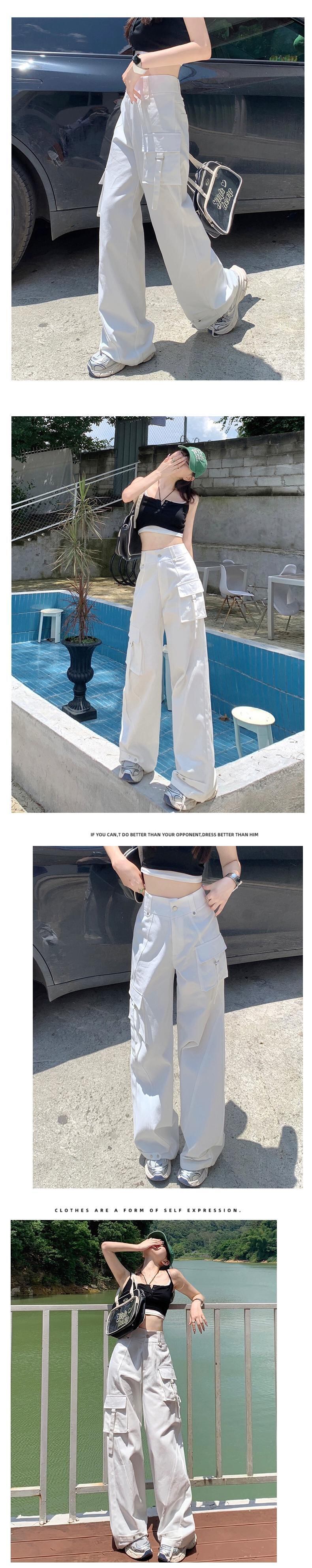 2024 春と秋の白オーバーオール女性の春ウエストワイドレッグパンツアメリカンストリートスタイルの女性のパンツ夏の薄いスタイル ホワイト スプリング 春物 サマー 夏物 オータム 秋物 ワイドパンツ パンツ ズボン ボトムス ジャージ kikitaka0211b60640600233