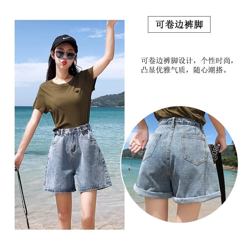 ウエストデニムショートパンツ女性の夏服 2019 新しい学生スタイルルーズ香港スタイルレトロシックなワイドレッグパンツトレンディな サマー 夏物 ショーツ ブルマー ワイドパンツ パンツ ズボン ボトムス ジャージ kikitaka0211b62692815318