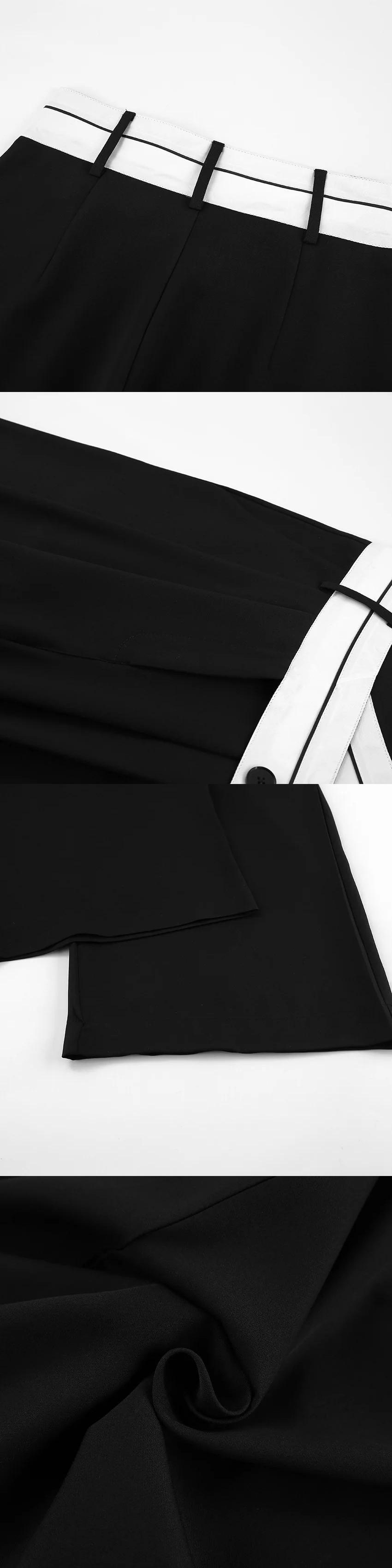 パッチワークワイドレッグパンツ女性黒コントラストウエストパンツ秋冬 2023 だぶだぶのズボンオフィス ブラック オータム 秋物 ウィンター 冬物 ワイドパンツ 会社 学校 通勤や通学にも kikitaka0805a46860931678