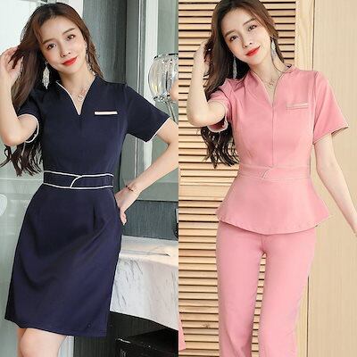 【上品 】ユニフォーム エステ サロン ワンピース 通勤 レディース 女性 制服 美容 介護 通勤 ワンピース半袖 七分袖 ジャケット 上下セット セットアップ エステ制服